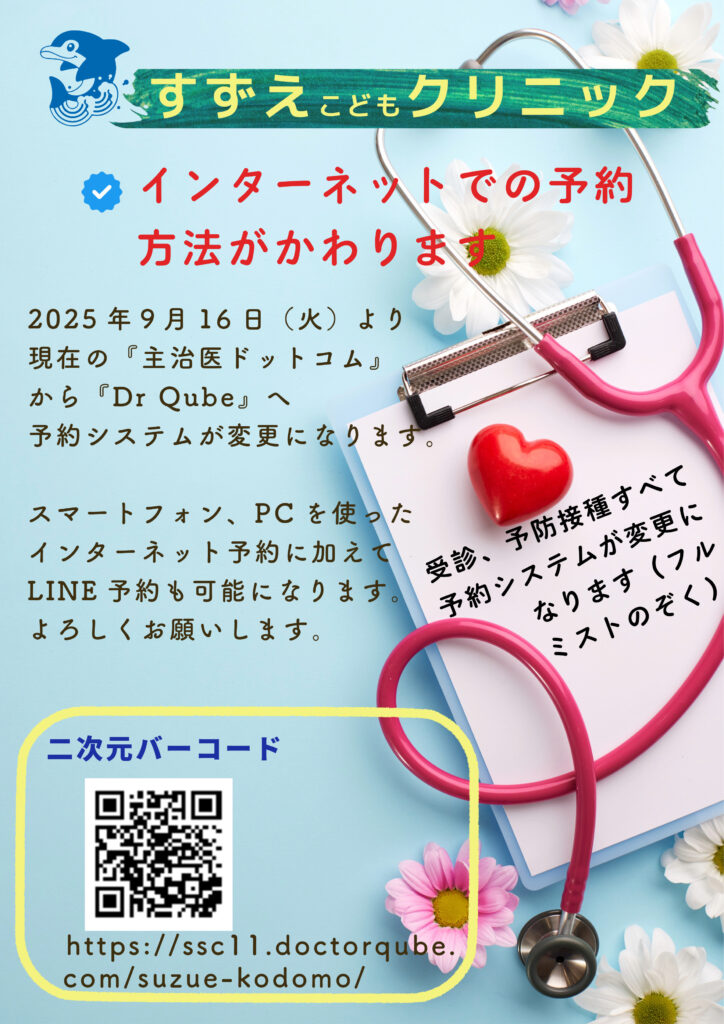 令和7年9月16日(火)より、今までの主治医ドットコムからDrQubeへ予約システムが変更になります。
