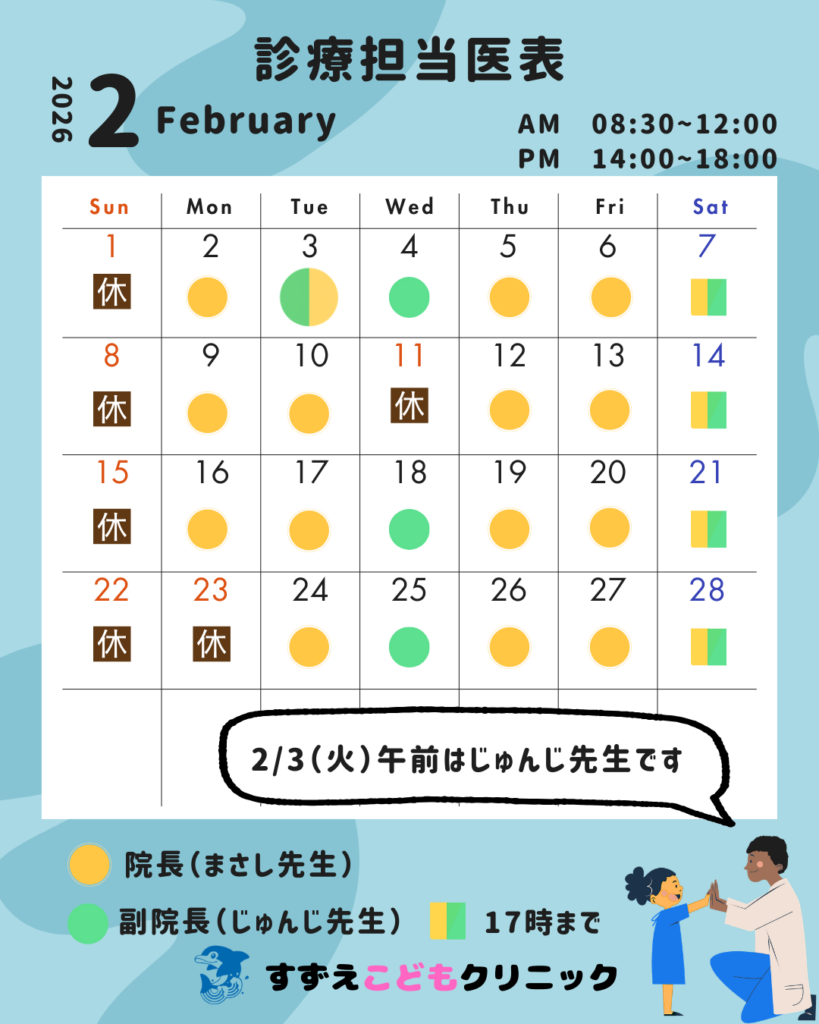 2026.02.13 📆2月、3月の担当医表です < 一覧へ戻る アーカイブ ・2026.02(1)・2026.01(2)・2025.12(1)・2025.11(2)・2025.10(2)・2025.09(2)